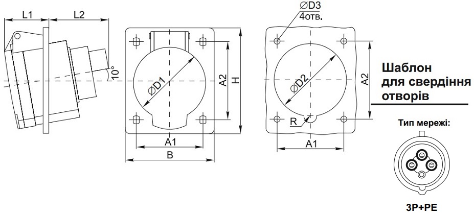 | Кількість контактів | 3P+PE |