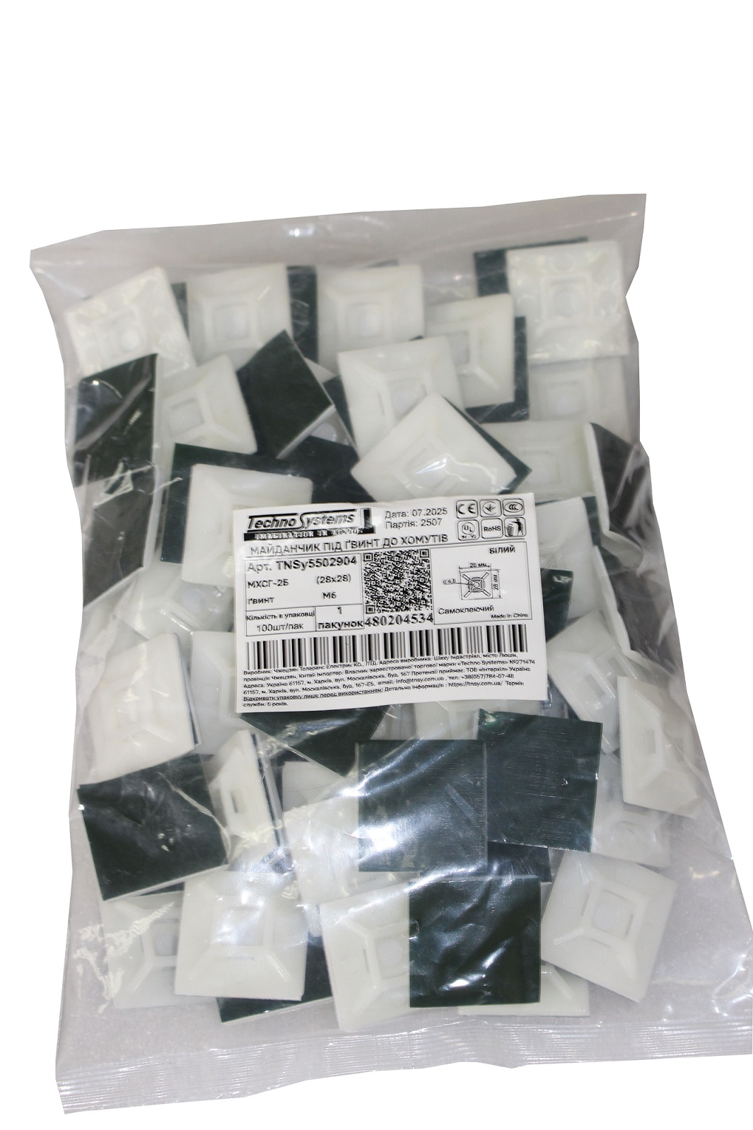 Майданчик МХСГ-2Б 28х28 під гвинт М6 до хомутів 4,8 білий TNSy